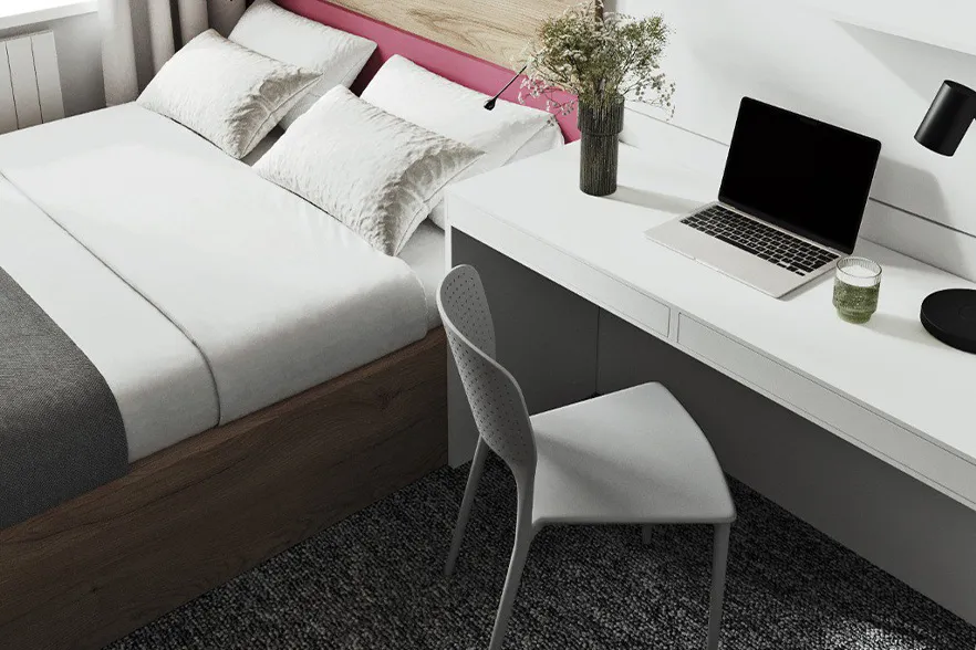 Площадь 12 кв.м. Вместимость – 2 гостя Двуспальная кровать Кондиционер Бесплатный Wi-Fi Телевизор Душ и санузел Комфортная рабочая зона